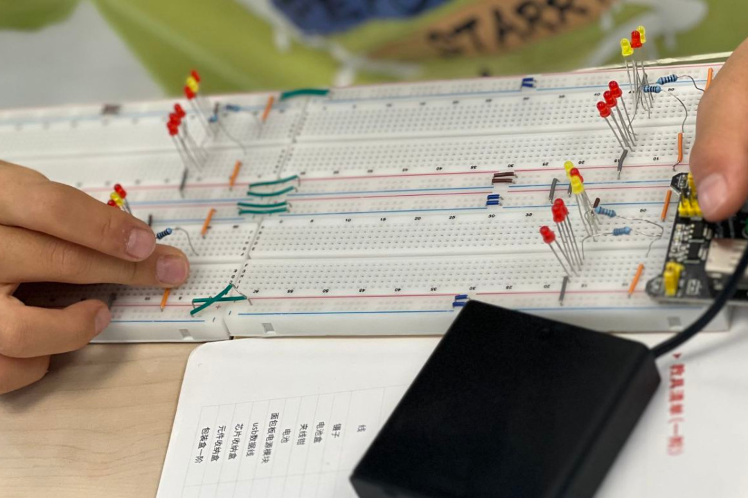 上午的科普课堂环节里,科普老师化身 “知识向导”,将抽象的计算思维知识与生活场景巧妙融合。加法器、多米诺骨牌、面包板等教具轮番登场,瞬间点燃了孩子们的探索欲。大家在动手操作中拆解二进制的构成密码,在互动探究中发现数字规律的奥秘,不仅直观感受到 “计算思维” 的魅力,更通过这些与父母工作息息相关的知识,拉近了与爸爸妈妈职业领域的距离。